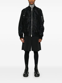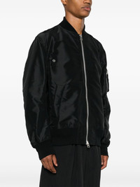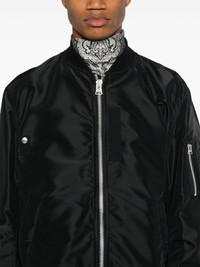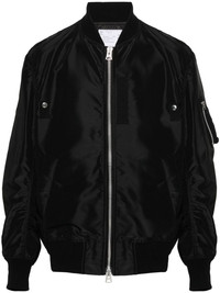 zip-up bomber jacket Highlights - Black - Ribbed band collar - Front two-way zip fastening - Long sleeves - Ribbed cuffs and hem - Sleeve zip pocket - Two side stud-fastening pockets - Press-stud fastening side slits - Straight hem Imported Composition Outer: Nylon 100%, Polyester 55%, Cotton 44%, Polyurethane 1% Lining: Polyester 100% SIZE & FIT Model measurements Height 6 ft 2 in(1.89 m) Bust/Chest 36.22 in(92 cm) Hips 35.82 in(91 cm) Waist 28.54 in(72.5 cm) Measurement CHEST 53.54 in(136 cm) SLEEVE LENGTH 38.97 in(99 cm) LENGTH 29.52 in(75 cm) WAIST 44.88 in(114 cm) Shoulder Width 20.86 in(53 cm) FittingInformation Designed to be unstructured, offering a loose fit throughout The ribbed hem offers a close, comfortable fit Made from a midweight non-stretch fabric This piece fits true to size – take your usual size