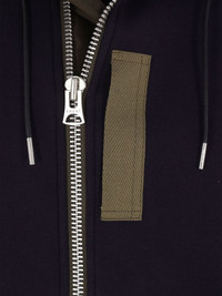 zip-up hoodie Highlights - Dark purple - Zip fastening - Olive green panels - Sleeve pocket - Hooded neckline - Cotton-blend Imported Composition Cotton 62%, Polyester 38% Washing instructions Read Manufacturer Guidelines