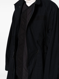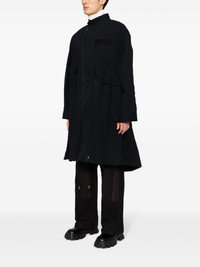 zip-up long-sleeve coat Highlights - Black - Funnel neck - Front zip fastening - Drawstring waist - Two front flap pockets - Long sleeves - Curved hem Imported Composition Outer: Cotton 68%, Nylon 32% Body: Calf Leather 100% Nylon 100% SIZE & FIT Model measurements Height 6 ft 2 in(1.87 m) Bust/Chest 34.25 in(87 cm) Hips 36.22 in(92 cm) Waist 29.52 in(75 cm) FittingInformation Designed for a boxy fit, intended for a loose fit throughout The adjustable drawstring means that you can adjust this piece’s fit to suit your comfort and preference Made from a midweight non-stretch fabric This piece fits true to size – take your usual size Washing instructions Dry Clean Only