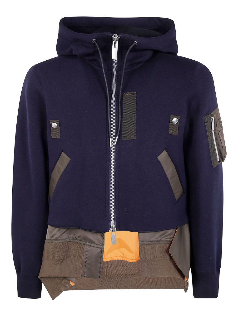 zip-up pocket hooded jacket Highlights - Navy blue - Zip fastening - Button detailing - Drawstring hood - Layered design Imported Composition Cotton 100% Washing instructions Read Manufacturer Guidelines