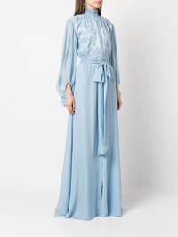Beatrix long dress Sachin & Babi is a fashion-design house based in New York City known for creating sleek and sophisticated designs. As seen on this blue-hued long dress highlighted with a floral motif on the front and a belted waist. Imported Composition Body: Silk 100% SIZE & FIT Model measurements Height 5 ft 10 in(1.77 m) Bust/Chest 33.85 in(86 cm) Hips 35.03 in(89 cm) Waist 24.01 in(61 cm) FittingInformation This piece fits true to size. We recommend you get your regular size Designed for a loose fit with a close fit at the waist Made with a lightweight fabric Washing instructions Dry Clean Only