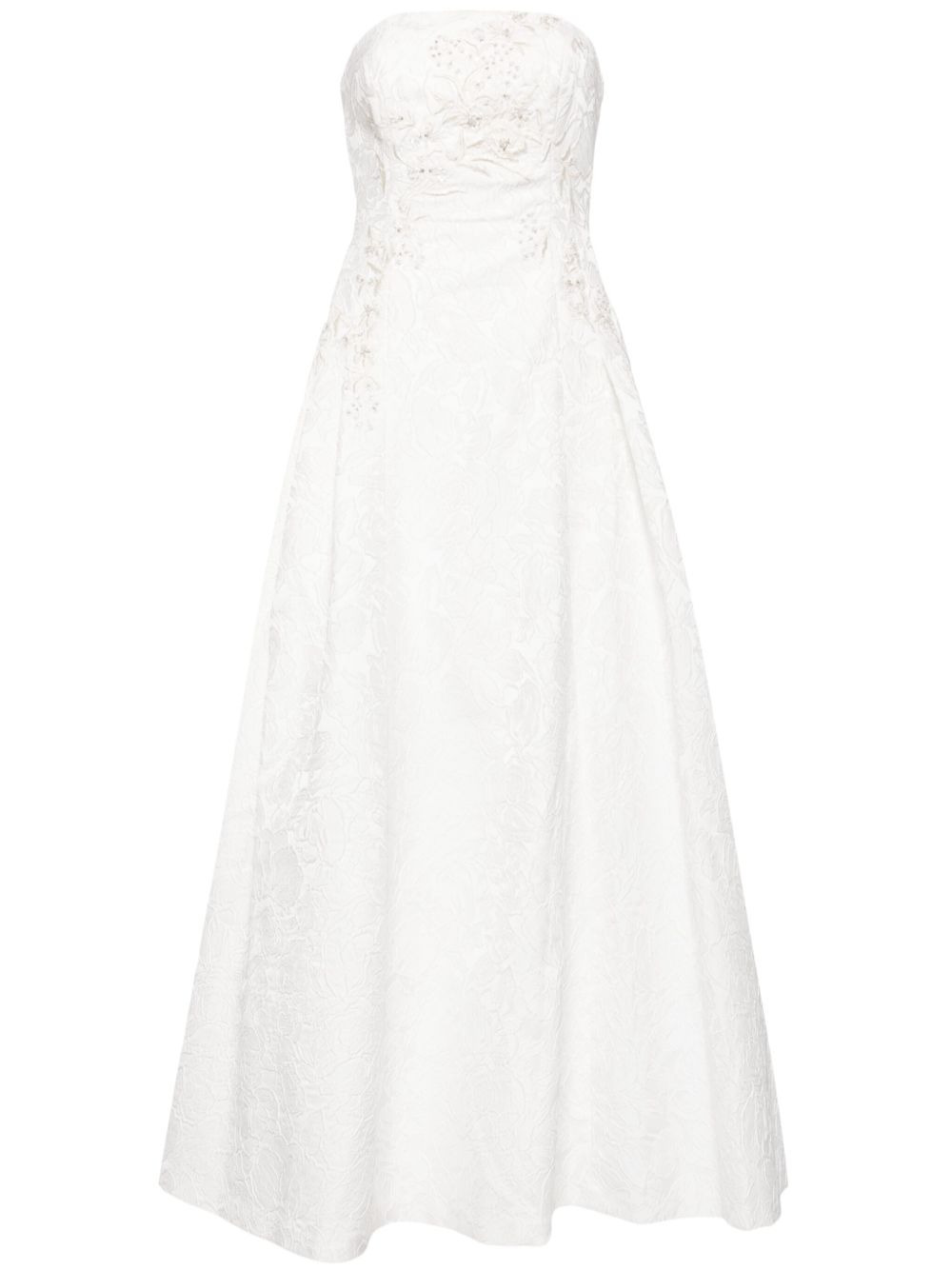 Belle embroidered-design dress Highlights - Ivory white - Embroidered design - Strapless - Rear zip fastening - Two side slit pockets - Flared hem - Long length Imported Composition Lining: Polyester 100% Outer: Polyester 95%, Polyamide 5% SIZE & FIT Model measurements Height 5 ft 10 in(1.78 m) Bust/Chest 32.67 in(83 cm) Hips 37 in(94 cm) Waist 25.59 in(65 cm) FittingInformation Designed for a close fit at the chest and waist with a loose fit at the hip The internal bodice offers support and shape Made from a midweight non-stretch fabric This piece fits true to size – take your usual size Washing instructions Dry Clean Only