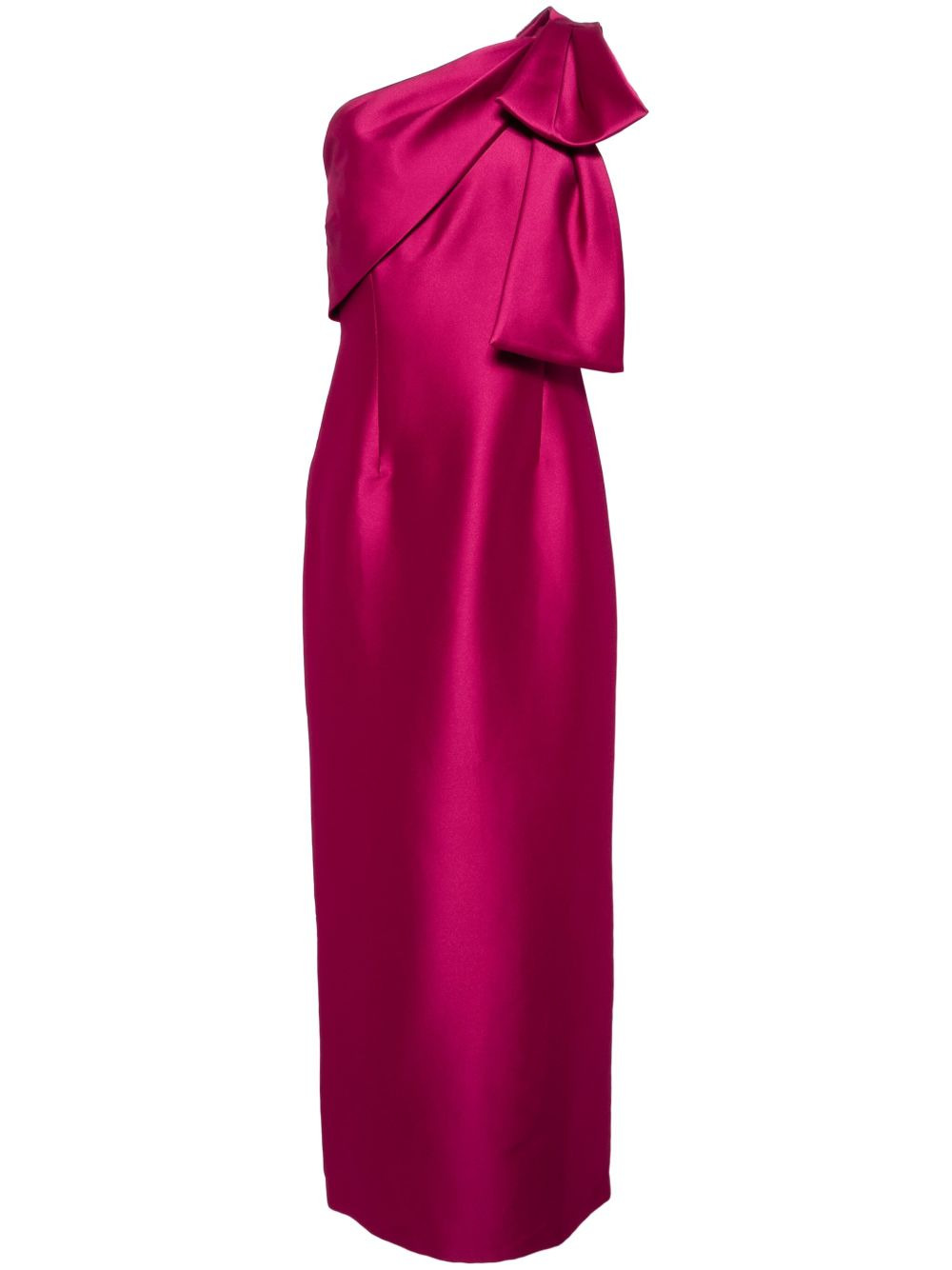 Bonnie gown Highlights - Rhodolite pink - Side zip fastening - Bow detailing - Dart detailing - Straight hem - One-shoulder Imported Composition Lining: Polyester 100% Outer: Polyester 97%, Spandex/Elastane 3% SIZE & FIT Model measurements Height 5 ft 10 in(1.77 m) Bust/Chest 31.49 in(80 cm) Hips 35.43 in(90 cm) Waist 25.19 in(64 cm) FittingInformation Designed for a close fit throughout The dart stitching adds structure and a closer fit in the torso of this piece Made from a midweight non-stretch fabric This piece fits large – take one size down Washing instructions Dry Clean Only