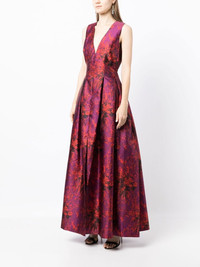 Brooke floral-print evening dress raspberry pink all-over floral print V-neck sleeveless rear zip fastening pleat detailing flared skirt straight hem Imported Composition Polyester 100% SIZE & FIT Model measurements Height 5 ft 11 in(1.8 m) Bust/Chest 28.34 in(72 cm) Hips 35.43 in(90 cm) Waist 23.62 in(60 cm) FittingInformation This piece fits large – you might want to get one size down Designed for a close fit at the bust and waist, but loose at the hip Made with a mid-weight non-stretch fabric Washing instructions Dry Clean Only
