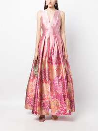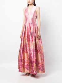 Brooke Gown abstract-print dress Highlights - Deep pink - Satin finish - Abstract pattern print - Pleat detailing - V-neck - Sleeveless - Fitted waistline - Flared skirt - Rear zip fastening - Long length Imported Composition Body: Polyester 100% SIZE & FIT Model measurements Height 5 ft 10 in(1.78 m) Bust/Chest 30.31 in(77 cm) Hips 34.64 in(88 cm) Waist 24.01 in(61 cm) Washing instructions Dry Clean Only