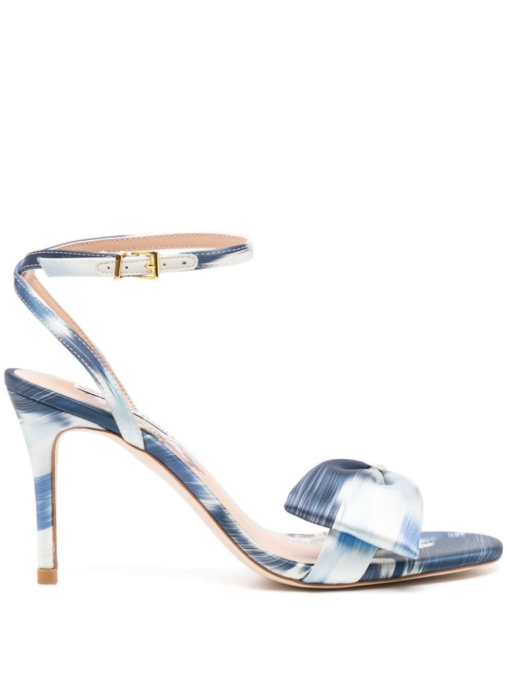 Chelsea 90mm bow-detail sandals Highlights - Indigo blue/ocean blue/beige - Ikat pattern print - Bow detailing - Gold-tone hardware - Round open toe - Buckle-fastening ankle strap - Single toe strap - Floral-print lining - Branded leather insole - High stiletto heel - Leather sole Imported Composition Outer: Polyester 97%, Spandex/Elastane 3% Lining: Calf Leather 100% Sole: Calf Leather 100% SIZE & FIT Measurement CIRCUMFERENCE 9.44 in(24 cm) HEEL 3.54 in(9 cm) HEIGHT 1.77 in(4.5 cm)