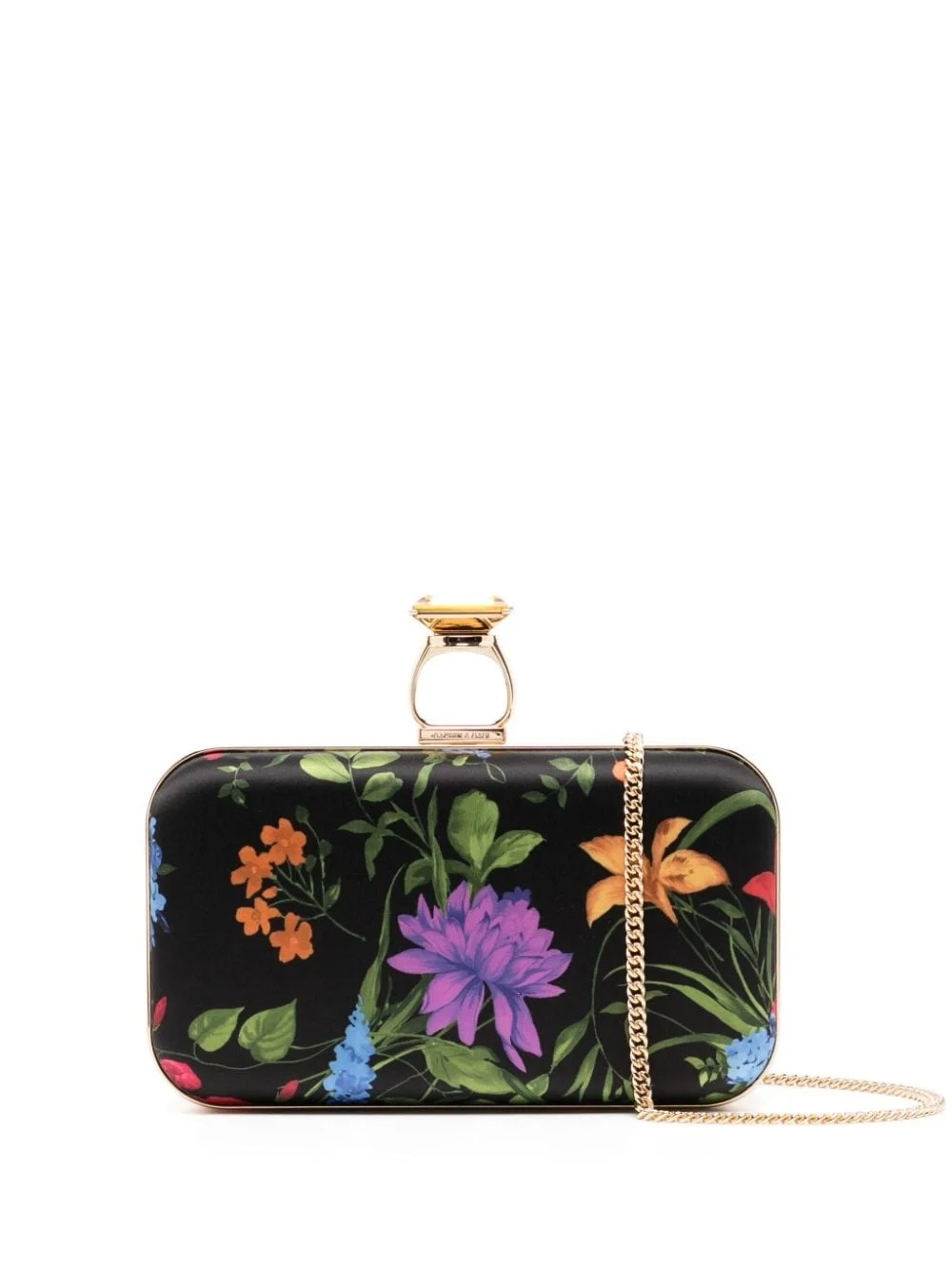On The Rocks clutch bag Highlights - Black/multicolour - Duchess satin weave - All-over floral print - Crystal embellishment - Detachable chain-link shoulder strap - Clasp fastening - Main compartment - Satin lining - Gold-tone hardware Imported Composition Outer: Spandex/Elastane 50%, Polyester 50% SIZE & FIT Model measurements Height 5 ft 9 in(1.76 m) Bust/Chest 31.1 in(79 cm) Hips 35.03 in(89 cm) Waist 24.4 in(62 cm) Measurement DEPTH 2.36 in(6 cm) HEIGHT 4.72 in(12 cm) STRAP 20.47 in(52 cm) WIDTH 7.48 in(19 cm)