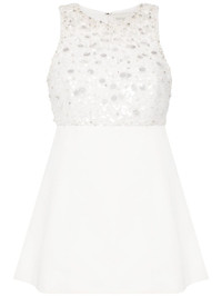 Pia faux-pearl mini dress Highlights - Ivory white - Sequin embellishment - Faux-pearl embellishment - Round neck - Concealed rear zip fastening - Sleeveless - Thigh-length - Straight hem Imported Composition Outer: Polyester 95%, Spandex/Elastane 5% Lining: Polyester 100% SIZE & FIT Model measurements Height 5 ft 10 in(1.78 m) Bust/Chest 32.67 in(83 cm) Hips 37 in(94 cm) Waist 25.59 in(65 cm) FittingInformation Designed for a close fit at the chest and waist with a loose fit at the hip Made from a midweight stretch fabric, this piece offers elasticity and flexibility when worn This piece fits large – take one size down
