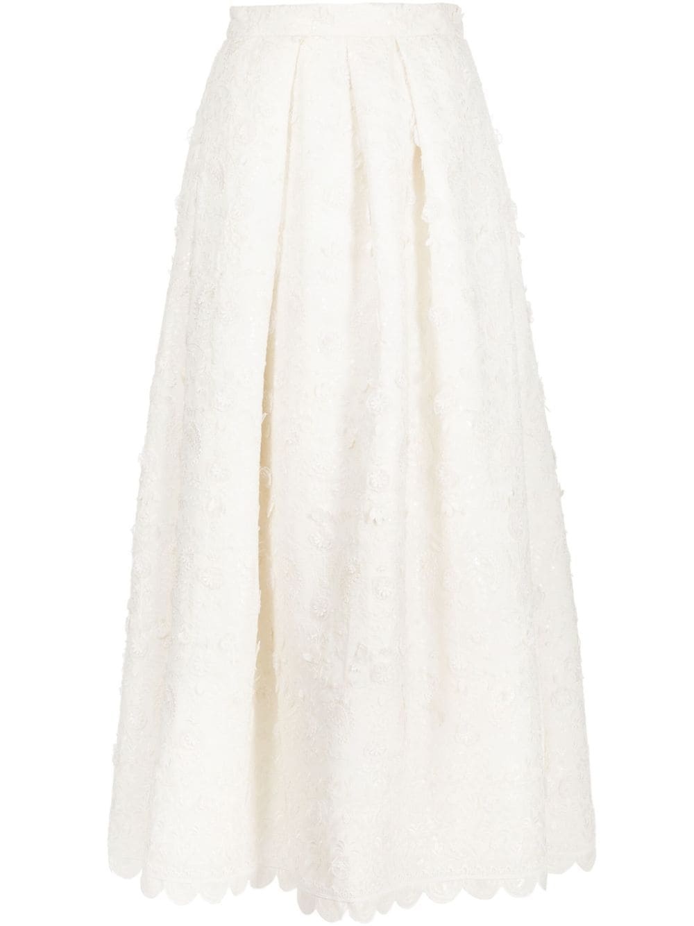 Pyaar floral-applique full skirt Highlights - Ivory white - All-over floral embroidery - Floral applique - Pleat detailing - High-waisted - Flared - Concealed rear zip fastening - Two side slash pockets - Scallop edge Imported Composition Body: Viscose 100% Nylon 100%, Polyester 100% SIZE & FIT Model measurements Height 5 ft 10 in(1.77 m) Bust/Chest 28.74 in(73 cm) Hips 35.82 in(91 cm) Waist 24.4 in(62 cm) Washing instructions Dry Clean Only