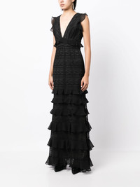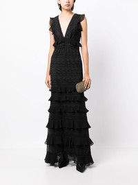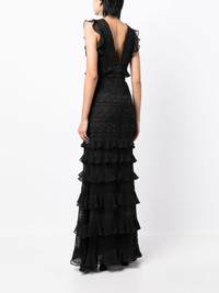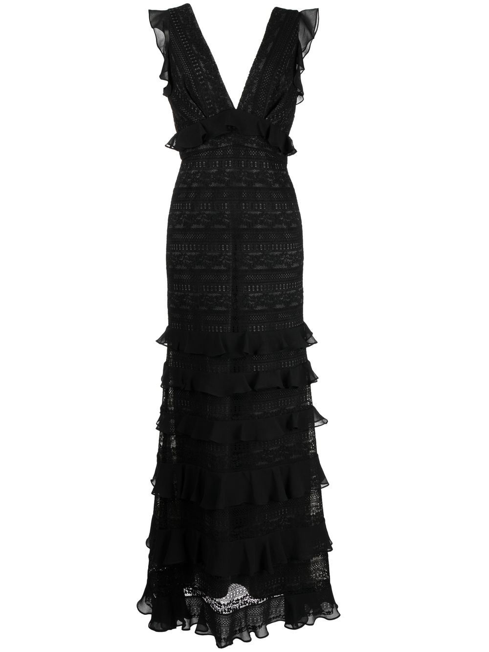 Serafina lace ruffled gown Constructed in a classic lace panelled design, the Serafina gown showcases Sachin & Babi's attention to detail. The black-hued dress is complete with playful ruffles that provide a finishing touch. Imported Composition Body: Viscose 38%, Nylon 33%, Cotton 29% Lining: Polyester 100% SIZE & FIT Model measurements Height 5 ft 10 in(1.77 m) Bust/Chest 31.49 in(80 cm) Hips 35.43 in(90 cm) Waist 25.19 in(64 cm) Washing instructions Dry Clean Only