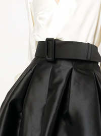 Zoe colour-block satin gown white/black box-pleat detail colour-block design V-neck long puff sleeves buttoned cuffs belted waist concealed rear zip fastening two side slit pockets A-line skirt Imported Composition Body: Polyester 100% SIZE & FIT Model measurements Height 5 ft 10 in(1.77 m) Bust/Chest 33.85 in(86 cm) Hips 35.03 in(89 cm) Waist 24.01 in(61 cm) FittingInformation This piece fits true to size. We recommend you get your regular size Designed for a close fit at the bust and waist, but loose at the hip Made with a mid-weight fabric