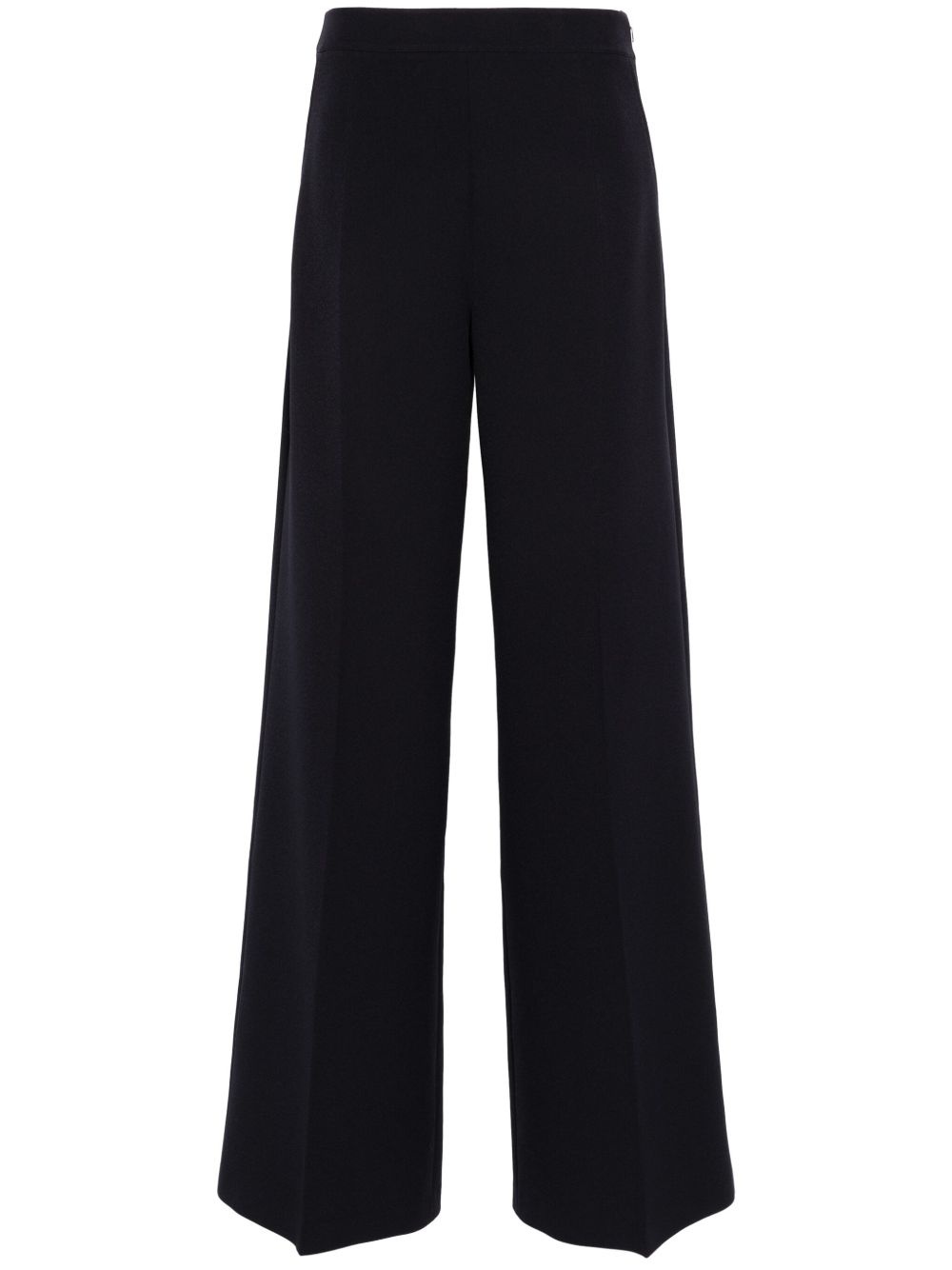 crepe wide trousers Highlights - Midnight blue - Crepe texture - Two side slash pockets - Pressed crease - Two rear welt pockets - Wide leg - Concealed side zip fastening Imported Composition Polyester 92%, Elastane 8% SIZE & FIT Model measurements Height 5 ft 10 in(1.78 m) Bust/Chest 33.07 in(84 cm) Hips 35.82 in(91 cm) Waist 25.98 in(66 cm) FittingInformation Designed with a wide-leg cut, these trousers allow for a close fit at the waist and offer a loose and roomy fit over the leg Made from a midweight stretch fabric, this piece offers elasticity and flexibility when worn This piece fits true to size – take your usual size Washing instructions Dry Clean Only