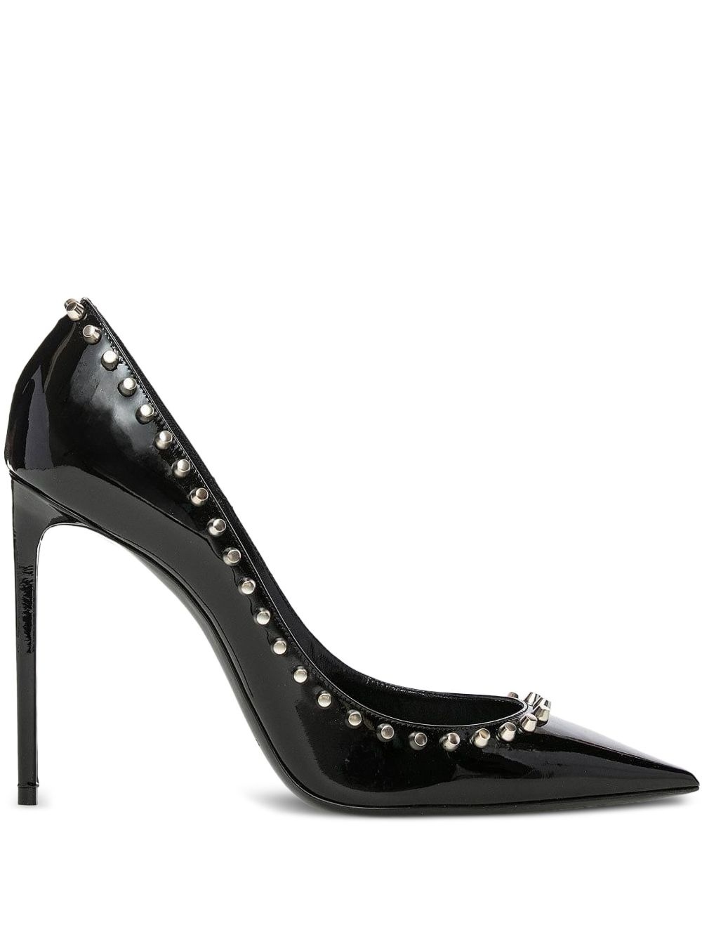 105mm Zoe patent leather studded pumps Highlights - Black - Patent leather - Stiletto heel - Pointed toe - Stud embellishment - Silver-tone studs Made in Italy Composition Outer: Patent Leather 100% Sole: Leather 100% Lining: Leather 100%