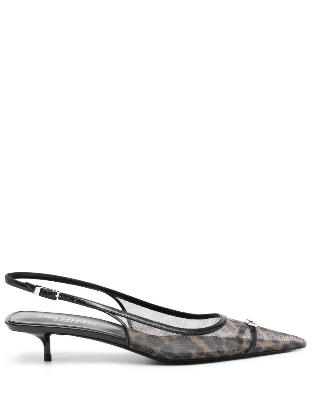 30mm Oxalis slingback pumps Highlights - Animalier brown/black - Semi-sheer construction - Mesh design - Leather trim - All-over leopard print - Decorative buckle detail - Pointed toe - Slide-buckle fastening - Branded footbed - 30mm kitten heel - This piece comes complete with a protective dust bag. Made in Italy Composition Outer: Mesh 100%, Calf Leather 100% Lining: Fabric 100%, Calf Leather 100% Sole: Calf Leather 100% SIZE & FIT Measurement HEEL 1.77 in(4.5 cm)