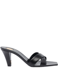 75mm Jill mules Highlights - Black - Slip-on style - Square open toe - Branded footbed - Mid heel Made in Italy Composition Lining: Calf Leather 100% Outer: Calf Leather 100% Sole: Calf Leather 100% SIZE & FIT Measurement HEEL 2.95 in(7.5 cm)