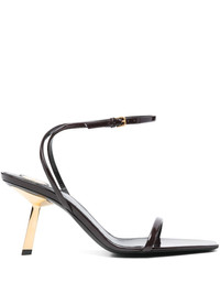 75mm Lee sandals Highlights - Cedar brown - Buckle-fastening ankle strap - High sculpted heel - Branded insole - Square toe Made in Italy Composition Lining: Rubber 100%, Calf Leather 100% Outer: Patent Leather 100% Sole: Calf Leather 100% SIZE & FIT Measurement HEEL 3.34 in(8.5 cm)