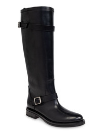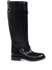 almond-toe leather boots Highlights - Black - Calf leather - Buckle fastening - Knee-length - Almond toe - Flat sole Made in Italy Composition Outer: Calf Leather 100% Sole: Leather 100% Lining: Calf Leather 100%
