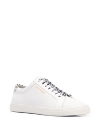Andy low-top sneakers Just like a leopard can't change its spots, you can't change your obsession with Saint Laurent. Take these Andy low-top sneakers for a walk on the wild side. Roaring! Highlights - White - Leather - Front lace-up fastening - Round toe - Flat rubber sole - Perforated detailing - Gold-tone logo lettering - Leopard print embellishment Made in Italy Composition Sole: Rubber 100% Outer: Calf Leather 100% Lining: Calf Leather 100% SIZE & FIT Measurement HEEL 0.98 in(2.5 cm) Sole height 0.78 in(2 cm)