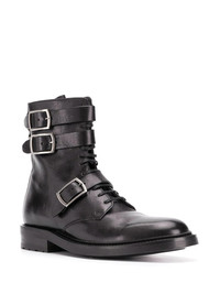 Army 20 buckle boots Who run the world? Girls! But you already know that what you don't know is that you can run the world in style with these Army 20 buckle boots from Saint Laurent. Boy, don't even try to touch these! Highlights - Black - Leather - Round toe - Front lace up fastening - Side zip fastening - Side buckle fastening - Low stacked heel Made in Italy Composition Sole: Rubber 100% Lining: Calf Leather 100% Outer: Calf Leather 100% SIZE & FIT FittingInformation This piece fits small – take one size up Measurement HEEL 1.18 in(3 cm) Sole height 0.39 in(1 cm) HEIGHT 6.69 in(17 cm) CIRCUMFERENCE 9.05 in(23 cm)