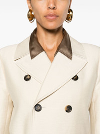 belted double-breasted coat Highlights - Beige - Wool-cotton blend - Textured finish - Detachable waist belt - Notched lapels - Double-breasted button fastening - Long sleeves - Belt loops - Two side flap pockets - Straight hem - Silk lining Made in Italy Composition Lining: Silk 100% Outer: Organic Cotton 73%, Virgin Wool 25%, Polyamide 2% SIZE & FIT Model measurements Height 5 ft 10 in(1.78 m) Bust/Chest 33.07 in(84 cm) Hips 36.61 in(93 cm) Waist 24.8 in(63 cm) Measurement SLEEVE LENGTH 16.92 in(43 cm) LENGTH 30.7 in(78 cm) WAIST 32.28 in(82 cm) BUST 33.85 in(86 cm) FittingInformation Designed for a slim fit that sits just away from the body offering a close yet comfortable fit The belt offers adjustability for fitted preferences Made from a midweight non-stretch fabric This piece fits true to size – take your usual size