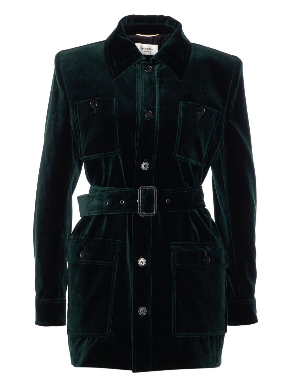 belted velvet jacket Highlights - Emerald green - Velvet texture - Button fastening - Flap pockets - Belted waist - Long sleeves Made in Italy Composition Cotton 100% Washing instructions Read Manufacturer Guidelines