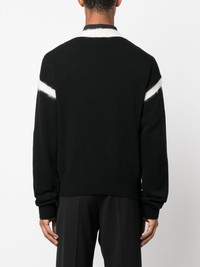 bicolour knitted jumper Saint Laurent injects its Parisian style in this black jumper. Cut from a wool blend, it's fitted with contrast white trims. Highlights - Black/white - Wool blend - Knitted construction - Crew neck - Long sleeves - Ribbed cuffs and hem Made in Italy Composition Wool 94%, Mohair 4%, Polyamide 2% SIZE & FIT Model measurements Height 6 ft 2 in(1.87 m) Bust/Chest 38.18 in(97 cm) Hips 36.61 in(93 cm) Waist 29.13 in(74 cm) Measurement CHEST 42.12 in(107 cm) SLEEVE LENGTH 38.38 in(97.5 cm) Washing instructions Dry Clean Only