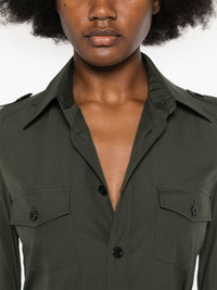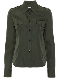 Military button-up cotton shirt Saint Laurent finely demonstrates its propensity for a minimalist style with this long-sleeve shirt. Realised in a khaki hue, this button-up shirt features a classic collar and two front patch pockets for a utilitarian finish. Highlights - Khaki - Cotton - Classic collar - Front button fastening - Long sleeves - Two front flap pockets - Curved hem Made in Italy Composition Cotton 100% SIZE & FIT Model measurements Height 5 ft 10 in(1.77 m) Bust/Chest 34.64 in(88 cm) Hips 35.43 in(90 cm) Waist 24.8 in(63 cm) Measurement LENGTH 24.01 in(61 cm) FittingInformation Designed for a slim fit that sits just away from the body offering a close yet comfortable fit Made from a midweight non-stretch fabric This piece fits true to size – take your usual size Washing instructions Dry Clean Only