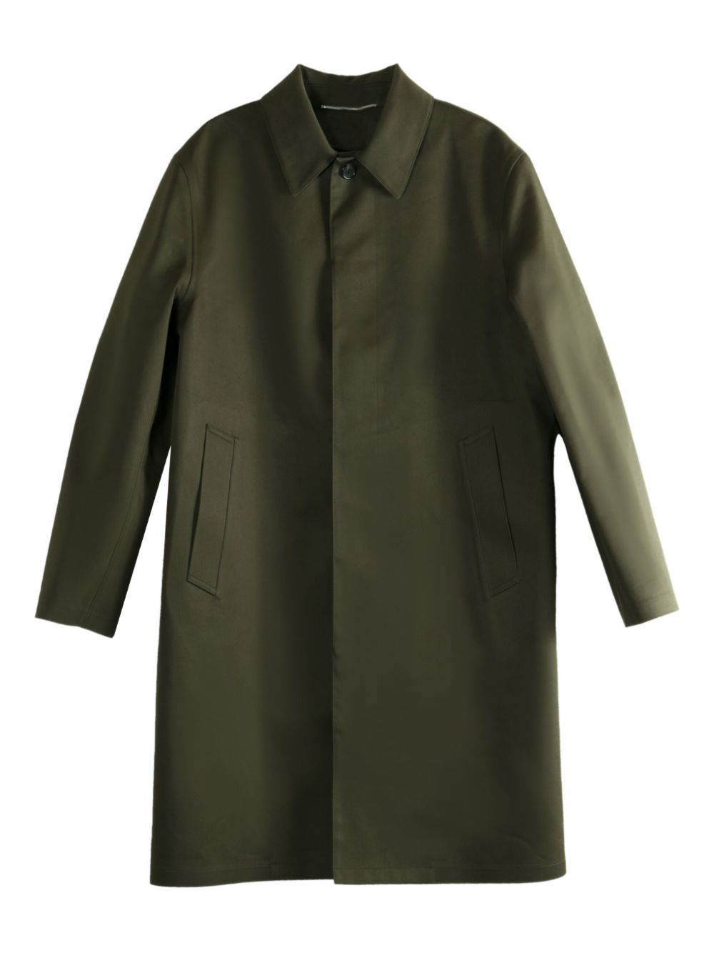 buttoned flap-pocket coat Highlights - Dark green - Collared neck - Concealed closure - Long sleeves - Flap pockets Made in Italy Composition Lining: Wool 100% Outer: Polyester 100% Washing instructions Read Manufacturer Guidelines