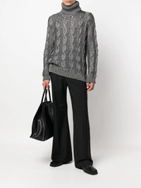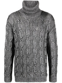 cable-knit roll-neck jumper charcoal grey chunky cable knit ribbed detailing roll neck long sleeves straight hem Made in Italy Composition Outer: Viscose 68% SIZE & FIT Model measurements Height 6 ft 1 in(1.85 m) Bust/Chest 35.82 in(91 cm) Hips 37.79 in(96 cm) Waist 29.13 in(74 cm) FittingInformation This piece fits true to size. We recommend you get your regular size Cut for a relaxed fit Made with a heavyweight fabric Washing instructions Hand Wash