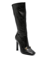 105mm Camden boots Keeping in line with the rest of the AW21 collection, Saint Laurent's Camden boots borrow elements from classic '60s styles. This square-toe pair is crafted from black leather and detailed with a gold-tone metal detail on the front that reflects the richness of the decade. Highlights - Black - Calf leather - Square toe - Chain-link detailing - Calf-length - Branded insole - Leather lining - High tapered heel - Leather sole - Side zip fastening Made in Italy Composition Lining: Leather 100% Sole: Leather 100% Outer: Calf Leather 100% SIZE & FIT Measurement CIRCUMFERENCE 11.81 in(30 cm) HEEL 4.13 in(10.5 cm)