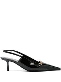 Carine 55mm patent-leather pumps These Saint Laurent pumps, the Carina, are a sleek and sophisticated style. Crafted from black calf leather with a glossy patent finish, they are decorated with a buckled strap on the toe. Highlights - Black - Calf leather - Patent finish - Decorative buckle detail - Pointed toe - Elasticated slingback strap - Branded insole - 55mm heel Made in Italy Composition Outer: Patent Calf Leather 90%, Brass 10% Lining: Calf Leather 100% Sole: Calf Leather 100% SIZE & FIT Measurement HEEL 2.16 in(5.5 cm)