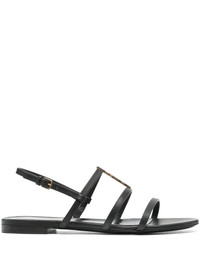 cassandra flat sandals in smooth leather with gold-tone monogram