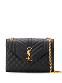 Cassandra quilted shoulder bag Quilted bags are a timeless accessory you'll never get bored of. The Cassandra shoulder bag from Saint Laurent is an exquisite example, detailed with the YSL plaque on the front. Meet your new sidekick. Highlights - Black - Calf leather - Signature ysl logo plaque - Gold-tone hardware - Quilted finish - Envelope design - Leather and chain-link shoulder strap - Front flap closure - Magnetic fastening - Main compartment - Internal slip pocket Made in Italy Composition Outer: Calf Leather 100% SIZE & FIT Model measurements Height 5 ft 10 in(1.78 m) Bust/Chest 32.28 in(82 cm) Hips 35.03 in(89 cm) Waist 23.22 in(59 cm) Measurement DEPTH 2.36 in(6 cm) HEIGHT 6.69 in(17 cm) STRAP 20.47 in(52 cm) WIDTH 9.44 in(24 cm)