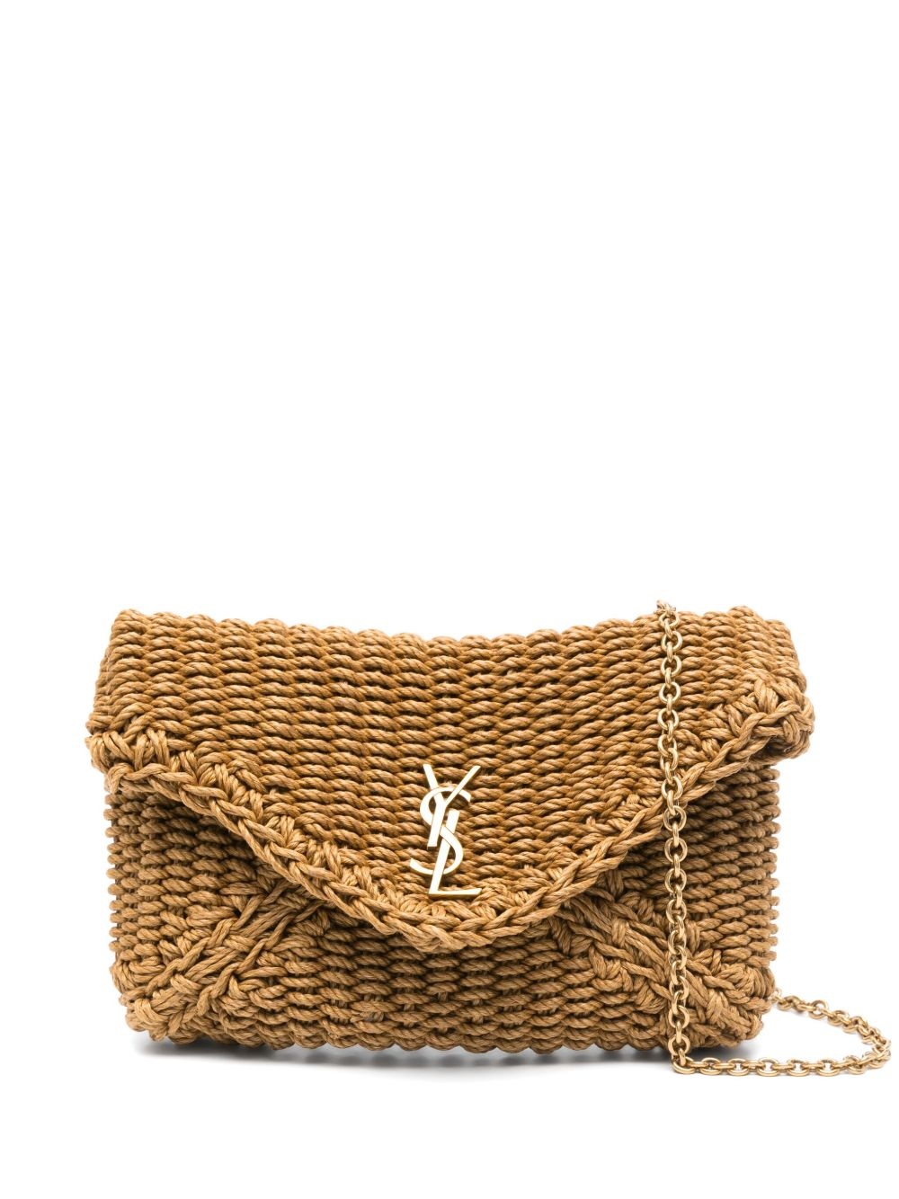 Cassandre clutch bag Highlights - Sand brown - Foldover top with press-stud fastening - Detachable leather and chain-link shoulder strap - Internal logo patch - This piece comes complete with a protective dust bag. Made in Italy Composition Outer: Straw 100%, Calf Leather 100% SIZE & FIT Model measurements Height 5 ft 11 in(1.8 m) Bust/Chest 32.67 in(83 cm) Hips 36.22 in(92 cm) Waist 24.4 in(62 cm) Measurement DEPTH 1.18 in(3 cm) HEIGHT 4.72 in(12 cm) WIDTH 6.69 in(17 cm)