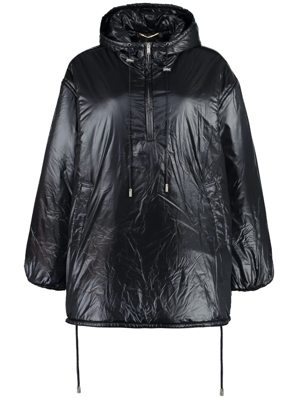 Cassandre padded hooded jacket Saint Laurent’s black padded Cassandre jacket is dubbed after the graphic artist who created the iconic YSL logo that’s quilted at the back. It’s crafted in lightweight shell with a drawstring hood and hem to protect against the elements. Highlights - Black - Shell - Embroidered logo to the rear - Drawstring hood - Half front zip fastening - Long sleeves - Elasticated cuffs - Two side welt pockets - Drawstring hem Made in Italy Composition Polyamide 100% SIZE & FIT Measurement SLEEVE LENGTH 20.98 in(53.3 cm) LENGTH 30 in(76.2 cm) WAIST 60.98 in(154.9 cm) BUST 52.99 in(134.6 cm) Washing instructions Read Manufacturer Guidelines