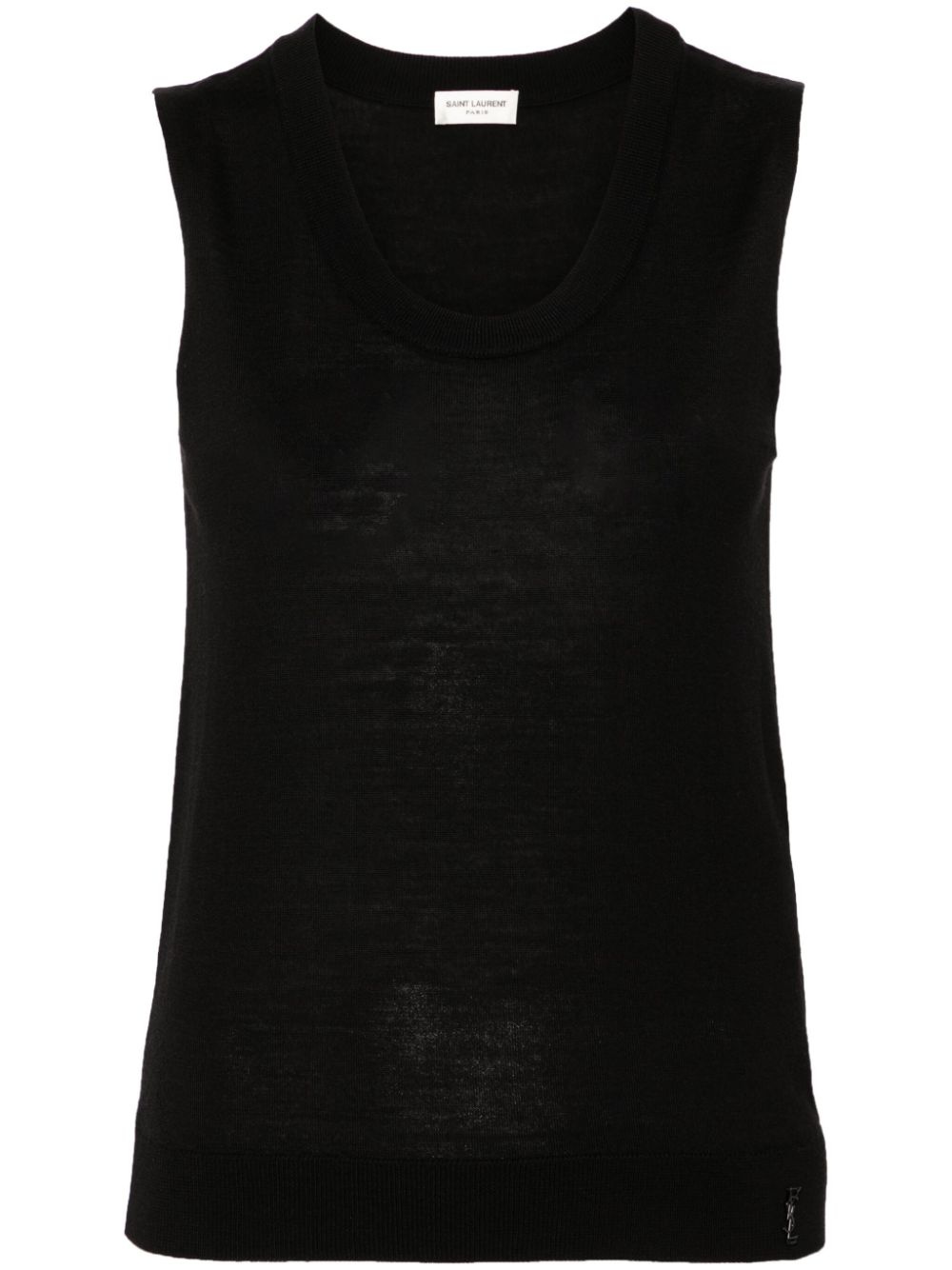 Cassandre wool tank top Highlights - Black - Wool - Knitted construction - Semi-sheer construction - Fine knit - Round neck - Sleeveless - Signature cassandre logo plaque - Ribbed-knit edge - Straight hem Made in Italy Composition Wool 100% SIZE & FIT Model measurements Height 5 ft 9 in(1.76 m) Bust/Chest 31.88 in(81 cm) Hips 35.43 in(90 cm) Waist 24.8 in(63 cm) FittingInformation Designed for a slim fit that sits just away from the body offering a close yet comfortable fit The ribbed hem offers a close, comfortable fit Made with a midweight knit, this piece offers some stretch This piece fits true to size – take your usual size Washing instructions Dry Clean Only