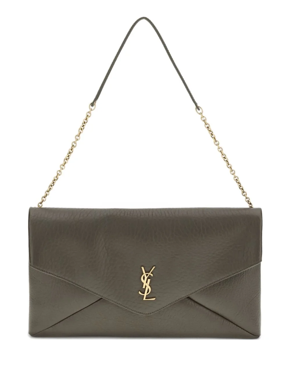 Cassandre XXL leather wallet-on-chain Highlights - Musk green - Lambskin - Envelope design - Signature cassandre plaque - Leather and chain shoulder strap - Foldover top - Main compartment Made in Italy Composition Outer: Lamb Skin 100% SIZE & FIT Measurement DEPTH 1.57 in(4 cm) HEIGHT 8.66 in(22 cm) WIDTH 13.77 in(35 cm)