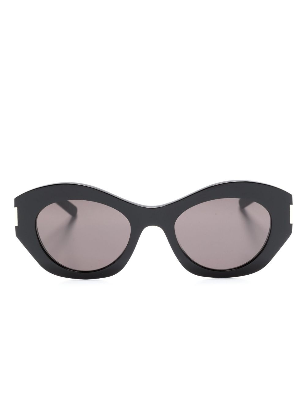 cat-eye sunglasses Arriving from Saint Laurent Eyewear's New Wave line, these cat-eye frame sunglasses boast a solid frame with logo-engraved arms. Highlights - Black - Acetate - Cat-eye frame - Tinted lenses - Logo-engraved arm - Curved tips - Straight arms - Uv protection Made in Italy Composition Acetate 100% SIZE & FIT Measurement Arm Length 5.51 in(14 cm) Bridge Width 0.82 in(2.1 cm) Lens Diameter 2.04 in(5.2 cm)