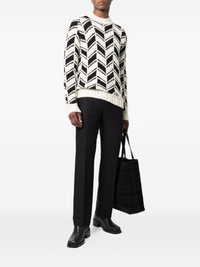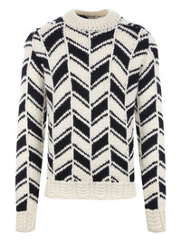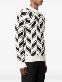 chevron-pattern sweater Highlights - Black/white - Mohair-wool blend - Round neck - Ribbed-knit edge - Two-tone design - Drop shoulder - Long sleeves Made in Italy Composition Polyamide 30%, Wool 30%, Mohair 25%, Viscose 15% SIZE & FIT FittingInformation This piece fits true to size. We recommend you get your regular size Cut for a loose fit Made with a mid-weight fabric