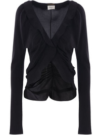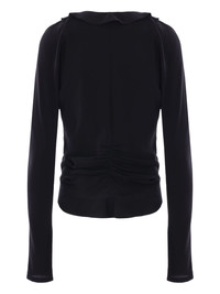 crepe de chine blouse Highlights - Black - Ruffled detailing - V-neck - Long sleeves - Asymmetric hem Made in France Composition Silk 100%