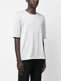 crew-neck short-sleeved sweatshirt Saint Laurent's minimal design style is evident in this piece. It is crafted from a blend of wool, cashmere and silk and is defined by its melange knitted construction. Highlights - Light grey - Cashmere-silk-wool blend - Knitted construction - Melange effect - Crew neck - Short sleeves - Straight hem Made in Italy Composition Outer: Silk 30% SIZE & FIT Model measurements Height 6 ft 2 in(1.87 m) Bust/Chest 36.41 in(92.5 cm) Hips 37 in(94 cm) Waist 29.52 in(75 cm) FittingInformation Designed for a relaxed fit, this piece allows for comfort and movement when worn Made from a midweight non-stretch fabric, this piece offers minimal elasticity when worn This piece fits true to size – take your usual size Washing instructions Dry Clean Only