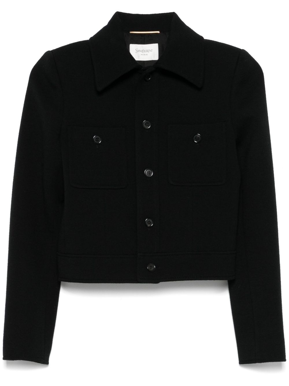 cropped jacket Highlights - Black - Front button fastening - Two chest patch pockets - Buttoned cuffs - Notched collar Made in Italy Composition Outer: Wool 80%, Polyamide 20% Lining: Silk 100%, Cotton 97%, Spandex/Elastane 3% SIZE & FIT Model measurements Height 5 ft 11 in(1.8 m) Bust/Chest 32.67 in(83 cm) Hips 36.22 in(92 cm) Waist 24.4 in(62 cm) FittingInformation Designed for a slim fit that sits just away from the body offering a close yet comfortable fit The internal shoulder pads offer a structured shape Made from a midweight non-stretch fabric