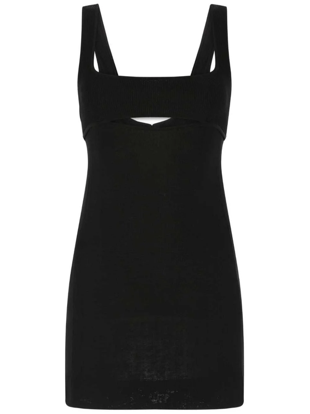 cut-out sleeveless mini dress Staying true to Saint Laurent's aesthetic, this mini dress combines a retro inspired-silhouette with contemporary accents. The sleeveless piece has a tonal black design which helps accentuate the daring cut-out detail on the front. Highlights - Black - Scoop neck - Cut-out detailing - Sleeveless - Low back - Concealed rear hook and zip fastening - Straight hem Made in Italy Composition Viscose 100% SIZE & FIT Measurement HIPS 32 in(81.3 cm) LENGTH 30 in(76.2 cm) WAIST 27 in(68.6 cm) BUST 27 in(68.6 cm) FittingInformation This piece fits true to size. We recommend you get your regular size Cut for a slim fit Made with a mid-weight fabric Washing instructions Dry Clean Only