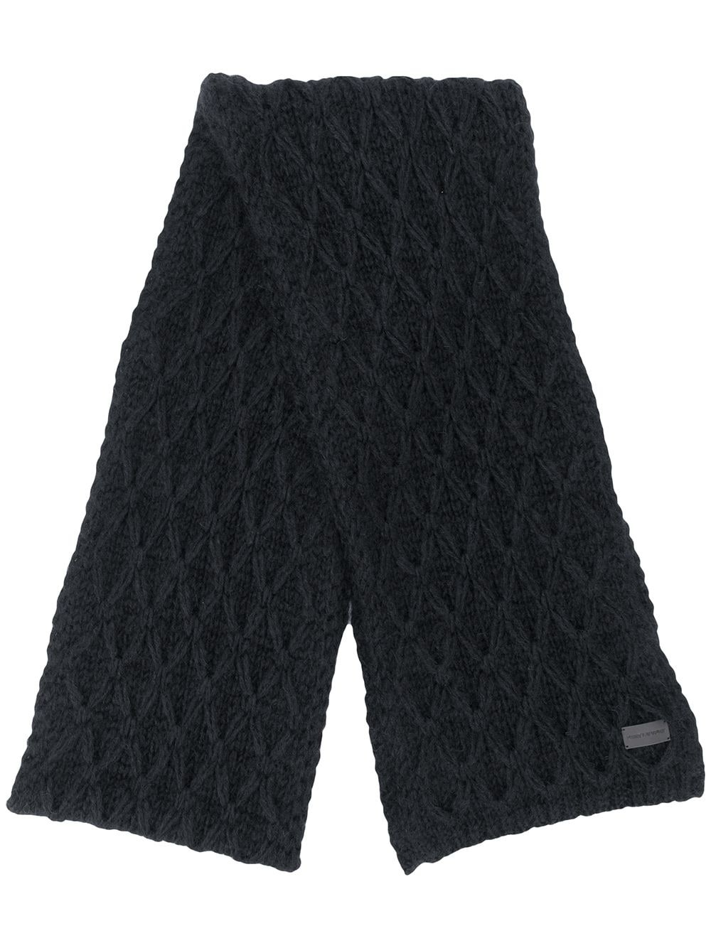 diamond cable-knit scarf Wrap up warm in this diamond cable-knit scarf from Saint Laurent. Made from a blend of wool, mohair and alpaca wool, this cosy accessory is sure to have you feeling all warm and fuzzy. Highlights - Black - Wool-mohair-alpaca wool blend - Diamond cable knit - Logo patch Made in Italy Composition Wool 46%, Mohair 25%, Alpaca Wool 19%, Polyamide 10% SIZE & FIT Model measurements Height 6 ft 1 in(1.86 m) Bust/Chest 35.43 in(90 cm) Hips 35.43 in(90 cm) Waist 29.92 in(76 cm) Measurement LENGTH 90.55 in(230 cm) WIDTH 9.84 in(25 cm) Washing instructions Dry Clean Only