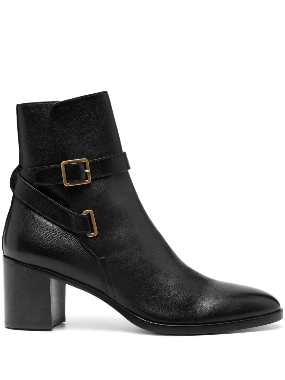 Dorian 70mm buckled biker boots Highlights - Black - Calf leather - Smooth grain - Crossover strap detail - Gold-tone hardware - Almond toe - Side buckle fastening - Ankle-length - Branded leather insole - 70mm block heel - Leather sole Made in Italy Composition Outer: Calf Leather 100% Sole: Calf Leather 100% Lining: Calf Leather 100% SIZE & FIT Measurement HEEL 2.75 in(7 cm) HEIGHT 5.51 in(14 cm) Sole height 0.39 in(1 cm)