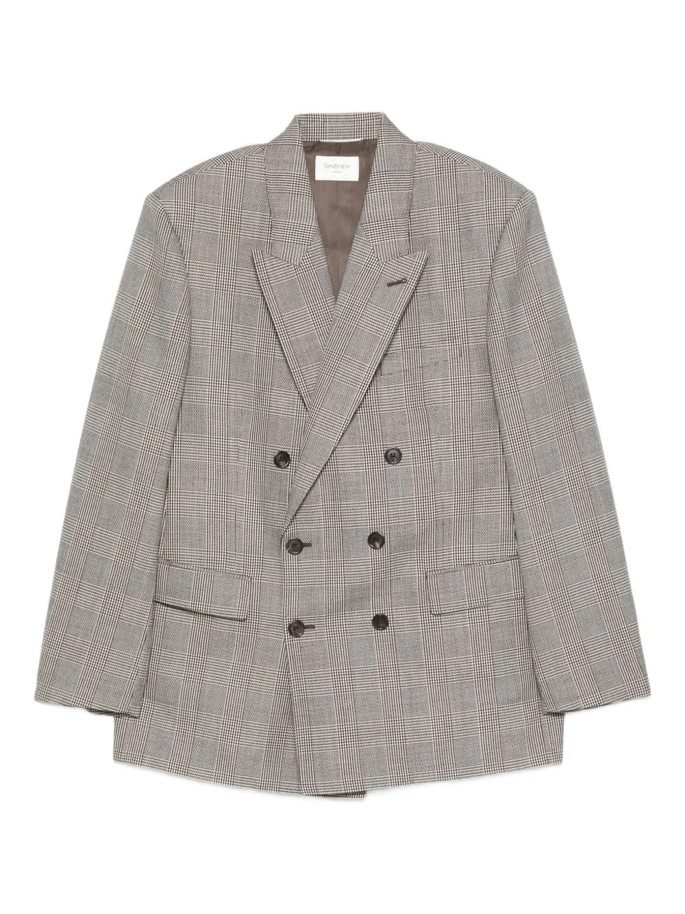 double-breasted check jacket Highlights - Black and white - Prince-of-wales pattern - Double-breasted - Front button fastening - Peak lapels - Front flap pockets Made in Italy Composition Outer: Wool 100% Lining: Silk 100%, Cotton 97%, Spandex/Elastane 3% SIZE & FIT Model measurements Height 6 ft 1 in(1.85 m) Bust/Chest 38.58 in(98 cm) Hips 37 in(94 cm) Waist 30.31 in(77 cm) Washing instructions Dry Clean Only