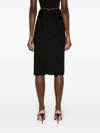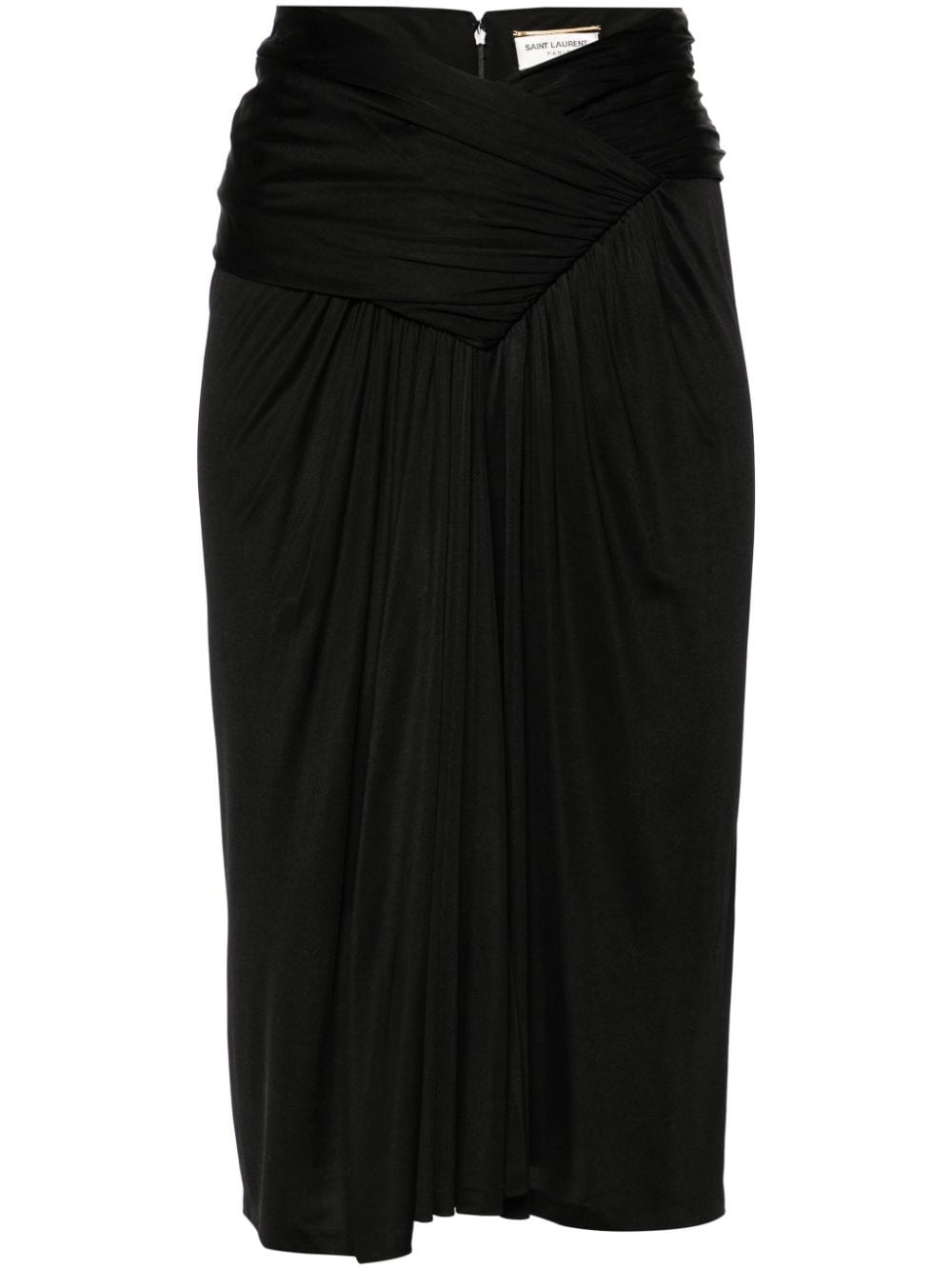 draped pencil miniskirt Highlights - Black - Stretch-jersey - Satin weave - Draped design - Ruched detailing - Pencil silhouette - Mid-rise - Concealed rear hook and zip fastening - Curved hem - Above-knee length Made in Italy Composition Viscose 100% SIZE & FIT Model measurements Height 5 ft 10 in(1.78 m) Bust/Chest 31.49 in(80 cm) Hips 37 in(94 cm) Waist 23.62 in(60 cm) FittingInformation This midi-length skirt is intended to be worn high on the waist Made from a midweight non-stretch fabric, this piece offers minimal elasticity when worn This piece fits true to size – take your usual size