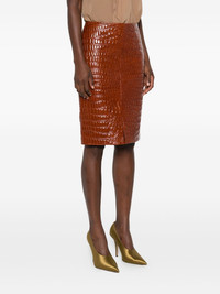 Croc-effect leather skirt Brown