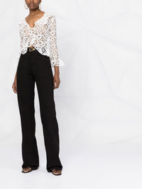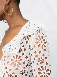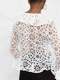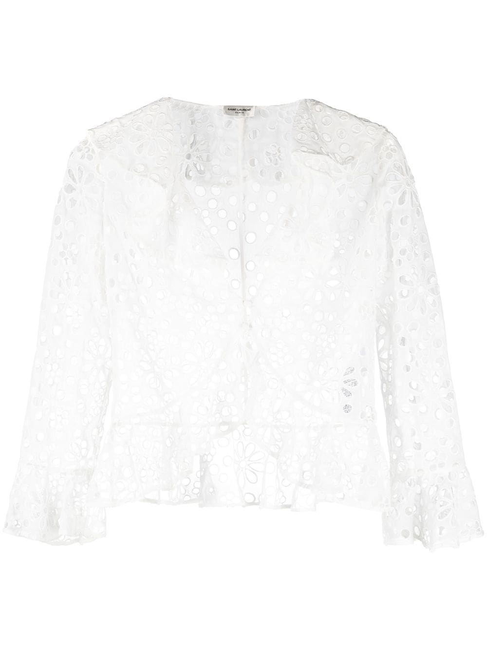 embroidered-design long-sleeve blouse Saint Laurent adds a creative edge to the brand's signature sleek style in this long-sleeve blouse. In a tonal colourway, the garment features embroidered detailing, cut-out detailing and ruffle detailing. Made in Italy Composition Cotton 35% Outer: Polyester 65% SIZE & FIT Model measurements Height 5 ft 11 in(1.8 m) Bust/Chest 31.49 in(80 cm) Hips 36.61 in(93 cm) Waist 24.4 in(62 cm) FittingInformation This piece fits true to size. We recommend you get your regular size Cut for a slim fit Made with a mid-weight non-stretch fabric Measurement SLEEVE LENGTH 20.98 in(53.3 cm) LENGTH 20.98 in(53.3 cm) WAIST 32 in(81.3 cm) BUST 35.98 in(91.4 cm)