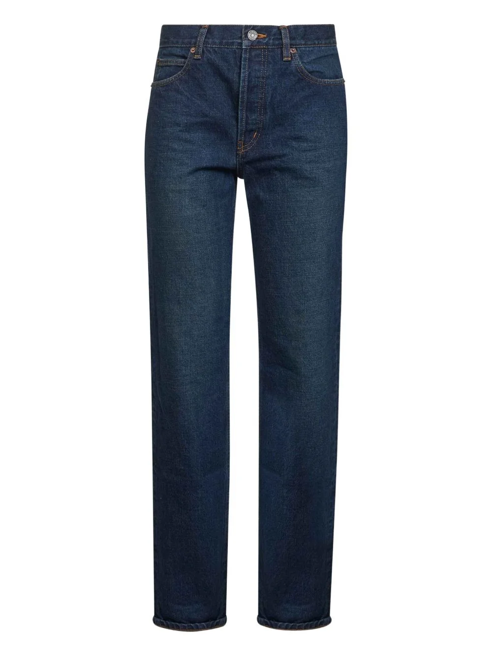 five-pocket straight jeans Highlights - Indigo - Button-fly closure - Belt loops - Five pockets - Logo jacron at back Imported Composition Cotton 100% Washing instructions Read Manufacturer Guidelines